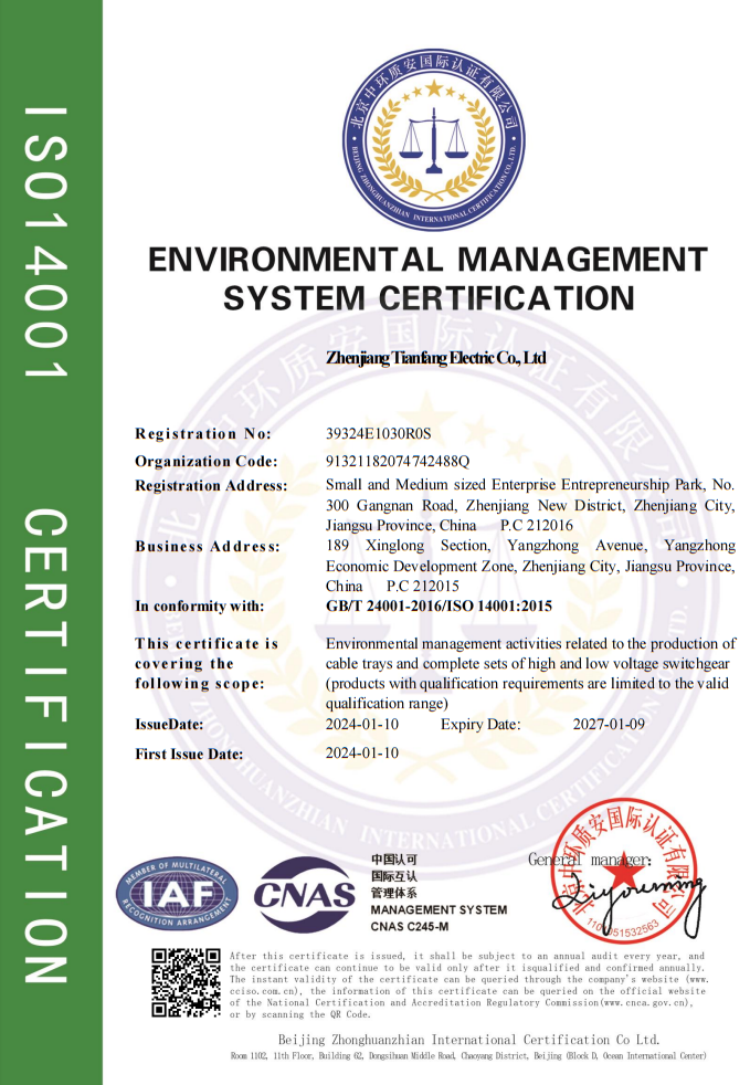 環(huán)境管理體系認(rèn)證證書(shū)(英